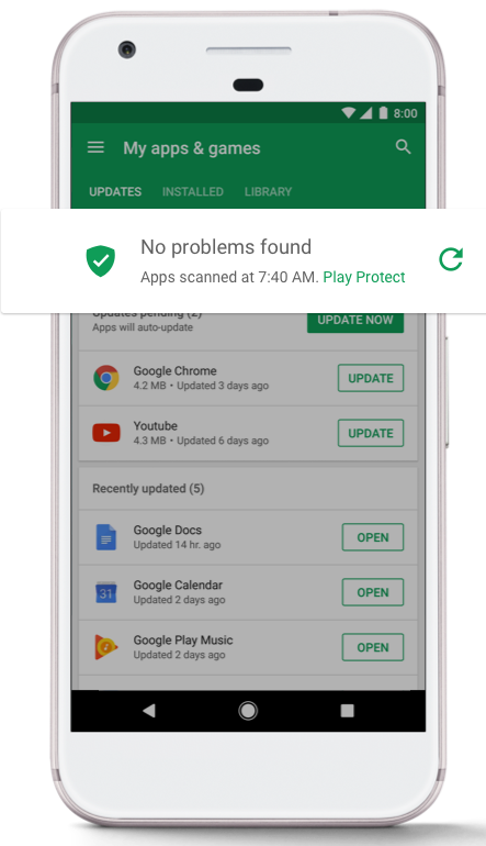 Google Play Protect 不断努力确保您的设备、数据和应用的安全。它会主动扫描您的设备并不断改进,以确保您拥有最新的移动安全性。全天候自动扫描您的设备,让您安心无忧。您还可以通过登录 Google 帐户来定位您的设备,甚至可以直接从浏览器调用它。远程锁定您的手机或在锁定屏幕上显示一条消息,以便如果有人发现它,他们就知道该联系谁。因此,Google Play Protect 服务可确保您的设备安全可靠。