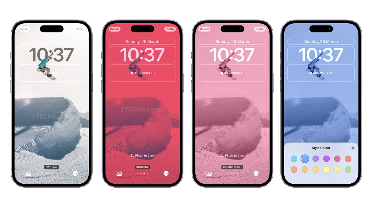 附加的颜色样式选项适用于选定的照片,它允许您选择自己选择的颜色来设计锁定屏幕背景的样式。您可以通过点击右下角的三点图标轻松访问该选项。