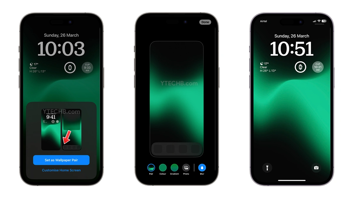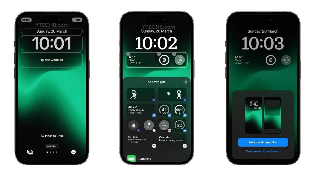 现在您已经了解了壁纸库中可用的默认壁纸的所有信息。找到适合锁屏的完美壁纸后,只需点击右上角的“添加”按钮,然后选择“设置为壁纸对”选项即可。