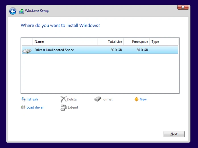 - 选择分割您想要安装 Windows 10 的计算机。它将擦除该驱动器中的所有数据。如果出现 GPT 或 MBR 错误,请检查。
