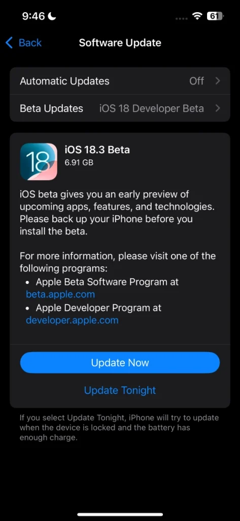 由于第一个 iOS 18.3 Beta 目前已向开发者开放,因此您需要在软件更新中选择开发者测试版选项才能获取此版本。但第二个测试版不会很快推出,我建议跳过第一个测试版,因为错误或问题可能会影响您的假期体验。