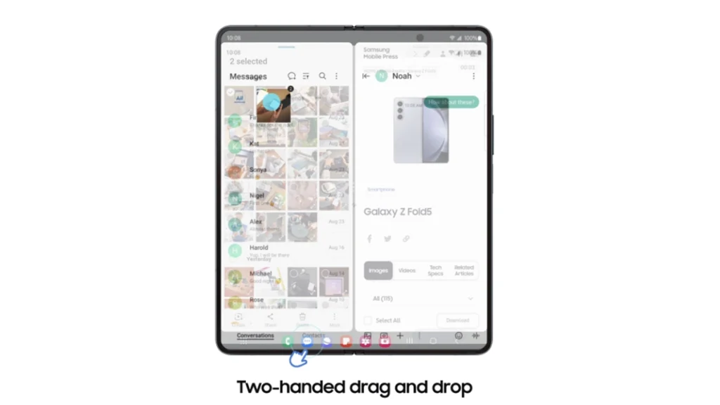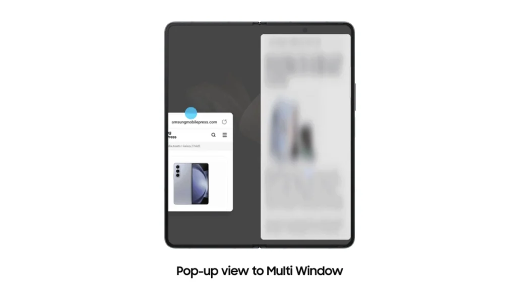 在 One UI 5.1.1 中,使用 Galaxy Fold 系列和平板电脑的用户可以将弹出视图更改为多窗口视图。当应用程序在弹出窗口中打开时,您可以将其向左、向右、向上或向下拖放,它将在屏幕的一半区域中打开。