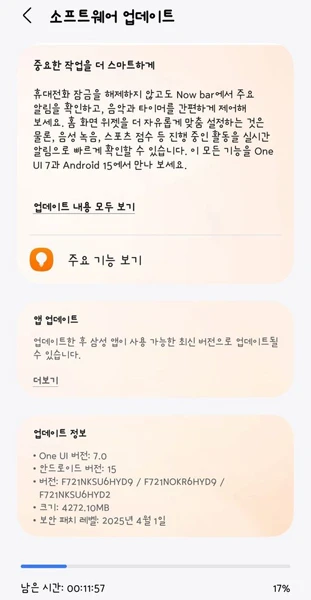 由于是重大升级,安装时需要大量数据;可折叠手机的更新大小约为 4.2GB。
