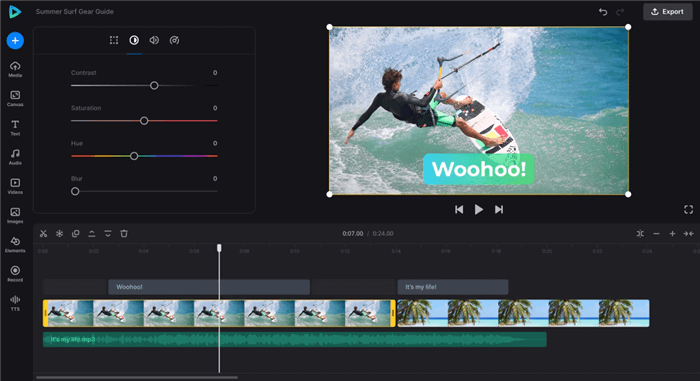 Kapwing 是一款在线视频编辑套件,具有增强视频清晰度的强大工具。