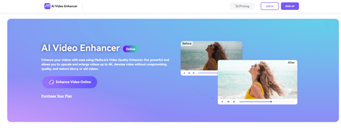 Media.io 使用 AI 自动增强和消除视频模糊,使其成为提高视频质量的有效工具。