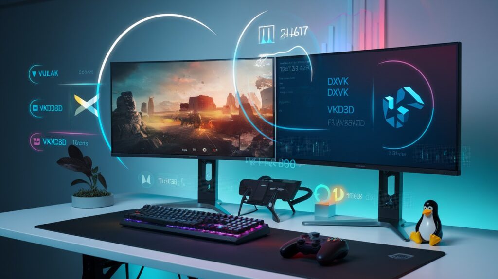 我见过游戏从无法玩的 15-20 FPS 跃升至流畅的 60+ FPS,只需正确配置这些转换层即可。它们是良好 Linux 游戏设置的重要组成部分。