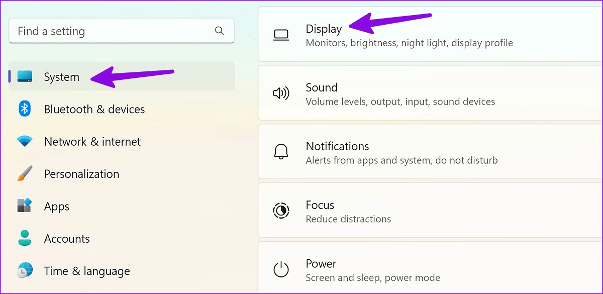 步骤1。按视窗+我打开设置。前往系统菜单并选择展示。