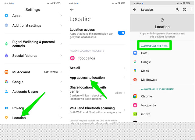 现在点击“应用程序访问位置”它将显示所有可以访问您的位置的应用程序。这里查看下的应用程序“一直允许”部分。即使手机不使用,这些应用程序也会耗尽电池电量。