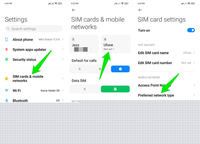 要禁用 5G,请转至设置>网络>SIM卡>首选网络类型。这里选择 4G 作为您的连接。