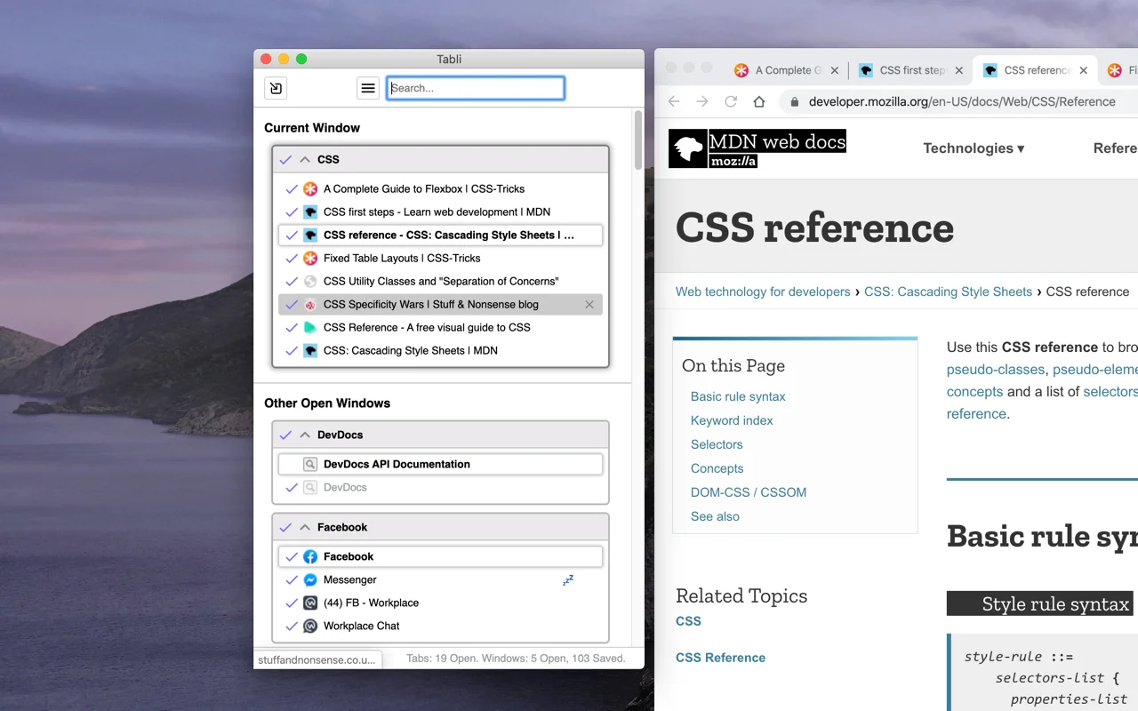 如果您使用大量已保存的会话或许多选项卡,与更高级的选项卡管理器相比,Tabli 会感觉很基础,它不提供精美的工作区分组或树形组织。