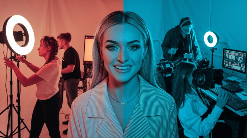 现实让不少粉丝震惊。那些完美的照片?他们通常需要几个小时和数百次尝试。那个“简单”的早晨例行公事?它涉及镜头外的一群人。