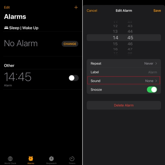 很多用户在设置闹钟时可能会忽略音量选项。如果闹钟铃声设置为没有任何,您的 iPhone 将不会发出声音。