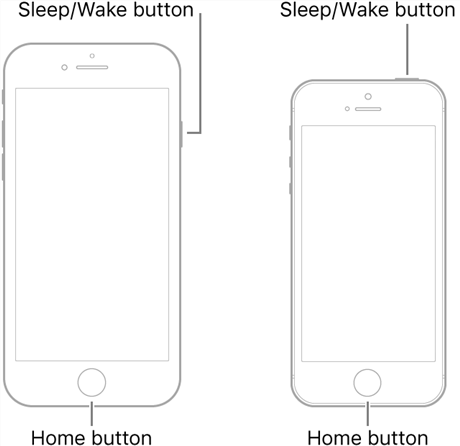 - iPhone 有主页按钮:用户需要同时按住顶部按钮和iPhone的主页按钮。当屏幕上出现 Apple 徽标时松开两个按钮。