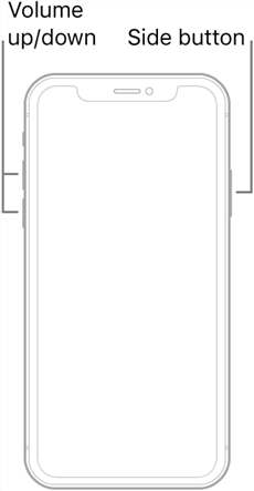 - 在其他 iPhone 型号上(没有主页按钮):用户需要快速按下并释放音量增大按钮以及快速按下并释放音量减小按钮。当苹果标志出现在屏幕上时,按住顶部按钮。