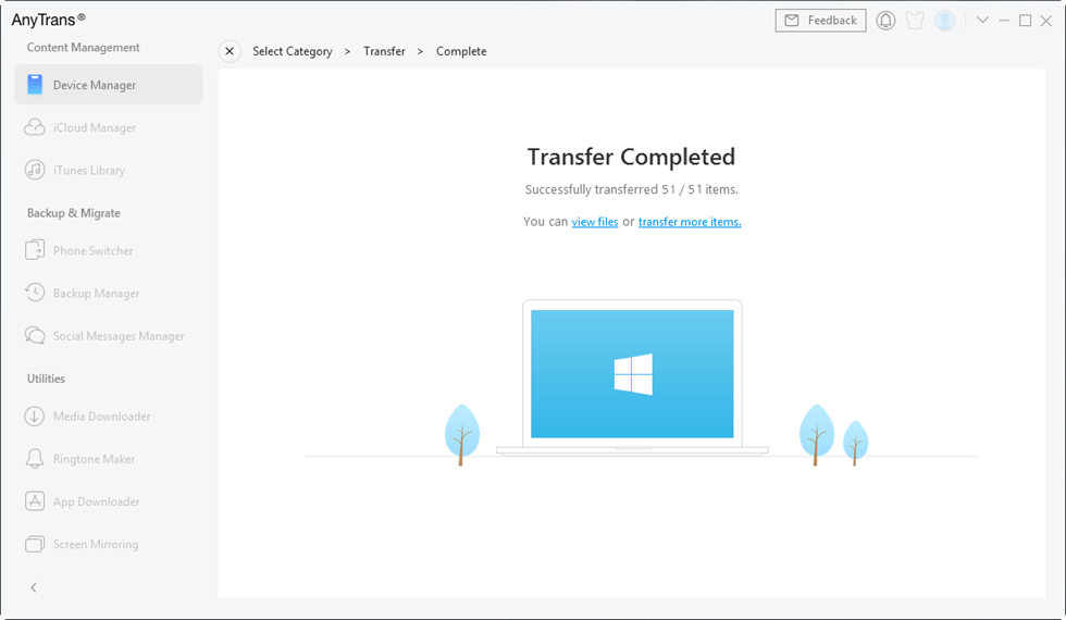 现在,让我们看看如何使用 AnyTrans 将已禁用的 iPhone 备份到计算机。