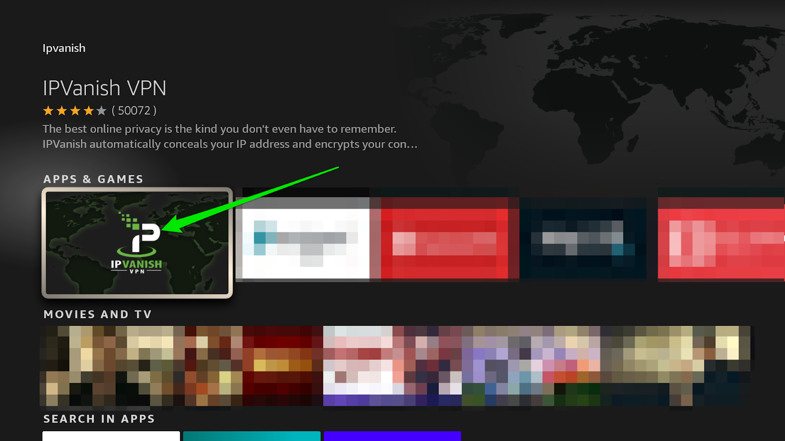 - 下载应用程序: 搜索IPVanish VPN在 Amazon Appstore 上下载并安装它。