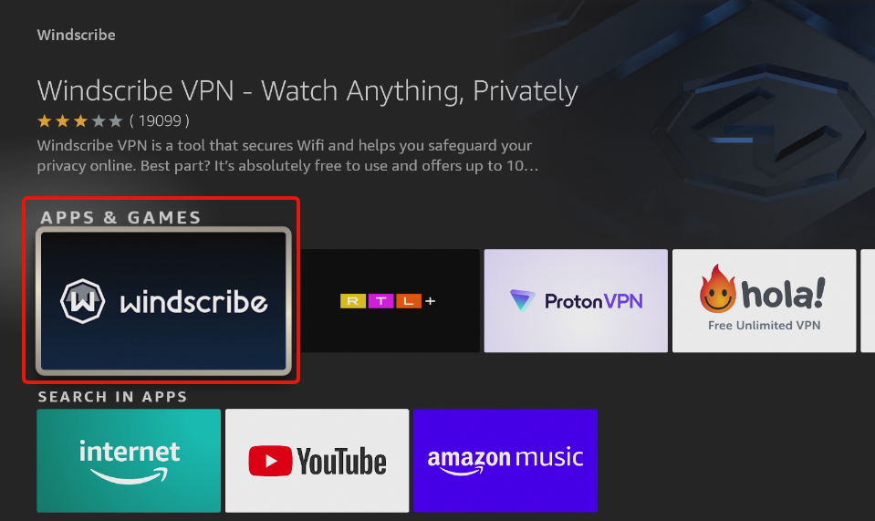 - 安装应用程序:前往亚马逊应用商店,搜索此免费VPN,然后下载并安装。