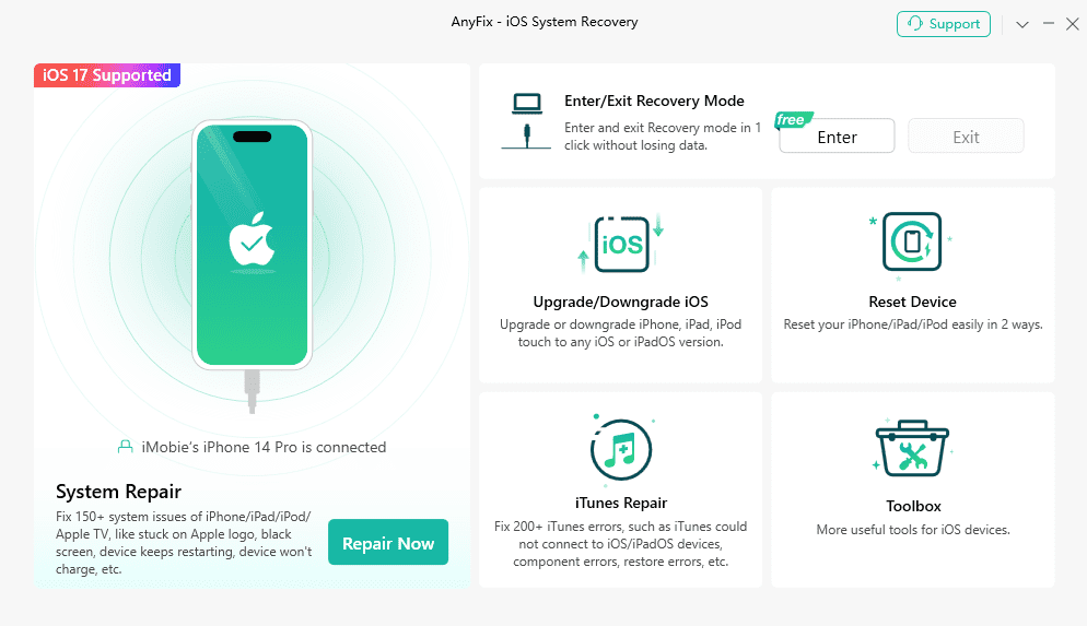 修复工具,可让您修复陷入恢复模式的 iPhone。此外,AnyFix 支持修复 150+