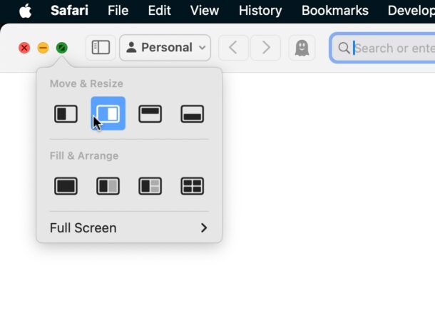 而且,您可以从“窗口”菜单本身访问窗口平铺选项,方法是转到“移动和调整大小”并选择要将窗口对齐或平铺到的位置。