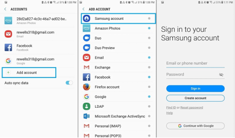 - 接下来,单击三星并输入所需的凭据。
