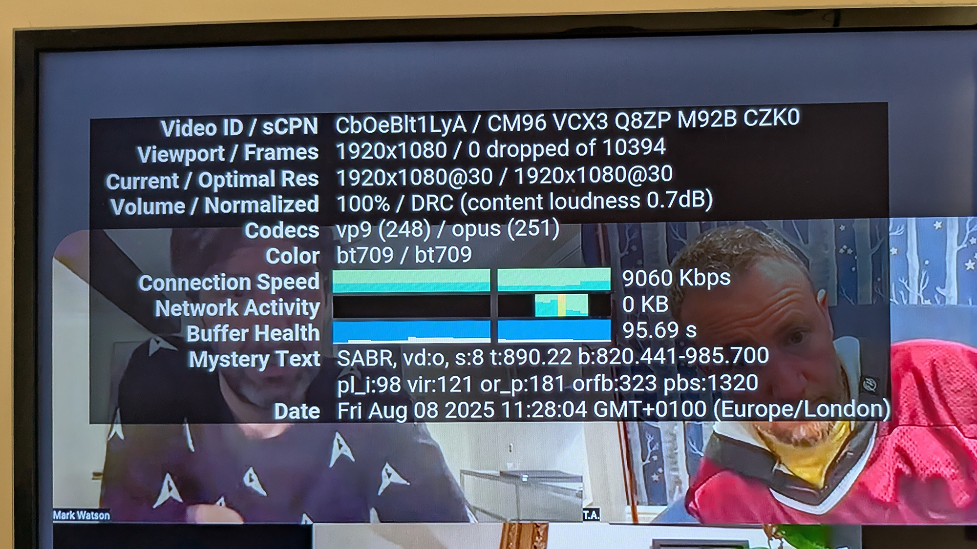 如果您想查看 YouTube 在电视上的表现(包括视频分辨率和网络速度),请在视频上按“选择”,向右滚动以选择齿轮图标,然后启用书呆子的统计数据。该面板对于解决应用程序的问题也很有用。