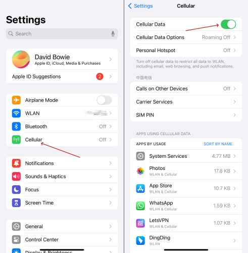 您应该知道的一件事是,您无法仅使用 Wi-Fi 将图片从 iPhone 发送到 Android,因为 iPhone 需要蜂窝数据才能 MMS(多媒体消息服务)发送图片。您可以切换到蜂窝网络,然后尝试通过彩信再次发送。以下是如何做到这一点。