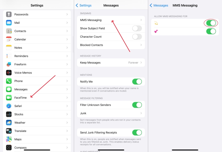 步骤 3.启用彩信然后您现在就可以将照片从 iPhone 发送到 Android 设备了。