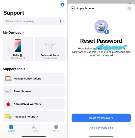 最后,您可以联系Apple重置Apple ID密码。您也可以进入支持应用程序进行更改。输入密码后,您可以按照说明设置新的 Apple ID 密码。