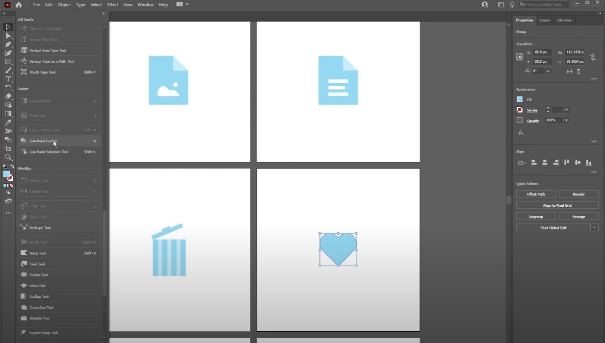 打开 Adobe Illustrator,然后使用选择工具选择要填充的部分。在工具栏中,单击此汉堡菜单,允许您编辑工具栏并添加现场油漆桶工具。您还可以使用您的K钥匙。