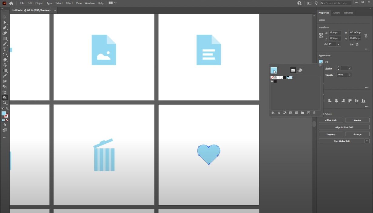 在你的特性, 在下面外貌,您可以使用颜色样本填充所选对象或从颜色样本中选择颜色混色器。更复杂的插图将允许您用不同的颜色填充更多内容。