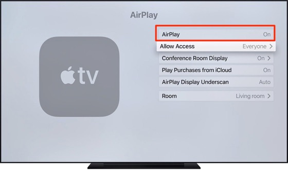 如果 AirPlay 在 Samsung TV 或 Apple TV 上持续冻结,请确保您的 Apple TV 或 Samsung TV 已启用 AirPlay。