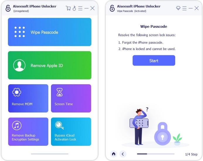 Aiseesoft iPhone Unlocker 提供广泛的解锁功能,包括: