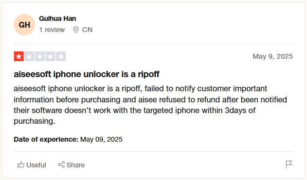 在信托试点,用户报告使用 Aiseesoft iPhone Unlocker 成功解锁了各种 iOS 设备。该工具以其易用性和高效性而闻名。然而,一些用户抱怨在某些情况下无法解锁设备。