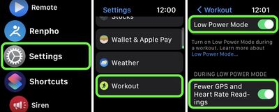 苹果表示,启用上述设置后,低功耗模式仅在步行、跑步和远足锻炼期间通过降低 GPS 和心率读数的频率(心率读数减少到每分钟一次,而 GPS 读数减少到每两分钟一次)并关闭警报、分段和分段来保持电池寿命。换句话说,这意味着要获得 60 小时的完整电池续航时间,您还需要在锻炼之外启用低功耗模式。