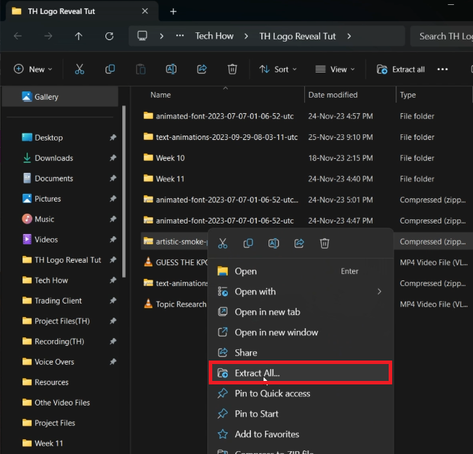 在 Windows PC 上:右键单击下载的 .zip 文件,然后选择“全部解压缩”将其解压缩。
