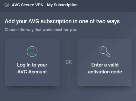 转到“我的 AVG – 我的订阅”并通过使用您的凭据登录或输入有效的激活码来激活您的帐户。