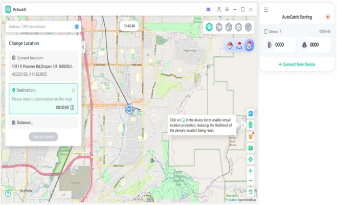 步骤 4。打开 Pokemon GO 并按照提示连接 PoGoskill Auto Catch。当“自动捕捉”框出现时,您的设置就完成了。您现在可以跟踪捕获情况、旋转 PokeStops 并调整您的路线。