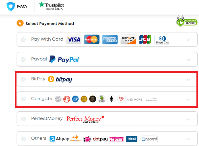 并非所有优质 VPN 提供商都接受比特币作为付款方式。