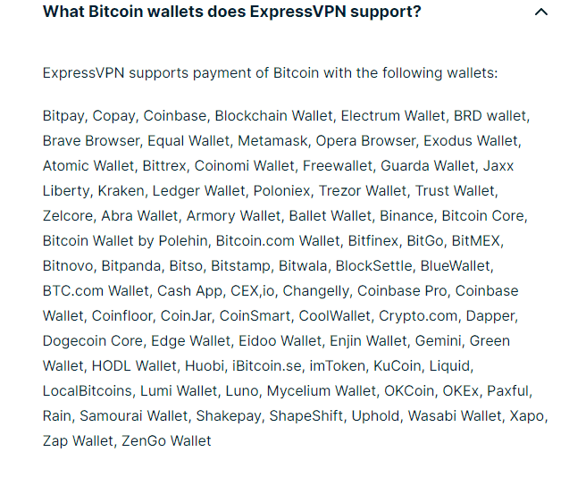 以下是 ExpressVPN 支持的钱包示例: