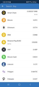 选择在 Trust Wallet 中购买的加密货币