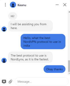 我与 NordVPN 实时聊天代理交谈,他确认 NordLynx 是最快的协议,使其成为印度最好的协议。