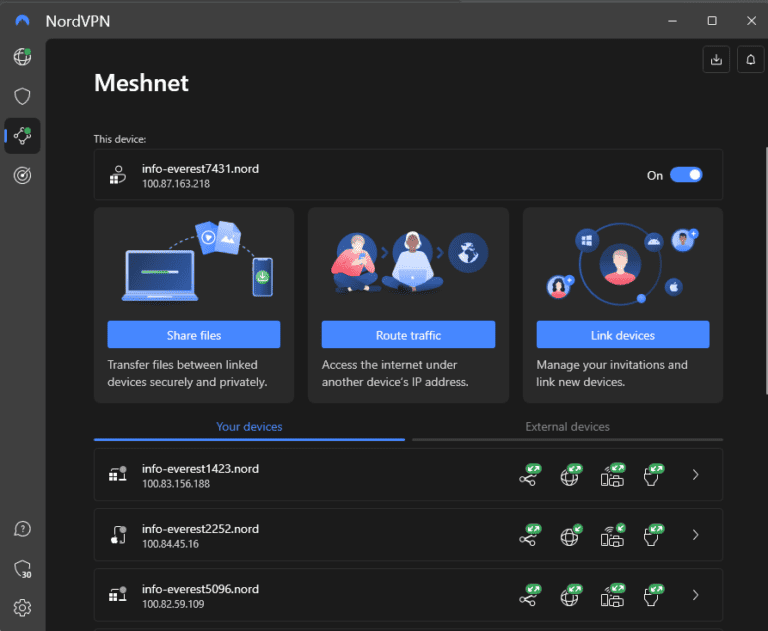 NordVPN 的网状网络特征是一个漂亮的工具,可以安全地创建命运 2 服务器并与世界其他地区的玩家连接,而无需打开端口或使用可能容易受到攻击的公共 LAN。我使用 Meshnet 功能与我的消防队一起玩 Gambit,即使我们生活在不同的大陆,也没有出现任何问题。