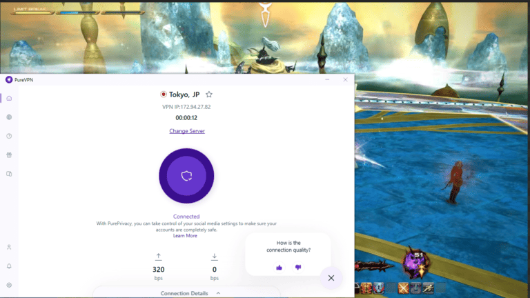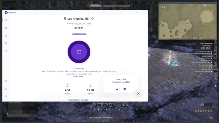 - 打开 PureVPN 并连接到适合 FFXIV 的服务器。
