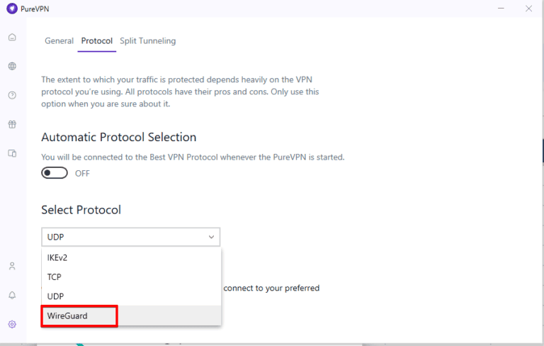 FFXIV 的最佳 PureVPN 协议是WireGuard协议,保证快速的速度、强大的DDoS攻击安全性和稳定的游戏体验。
