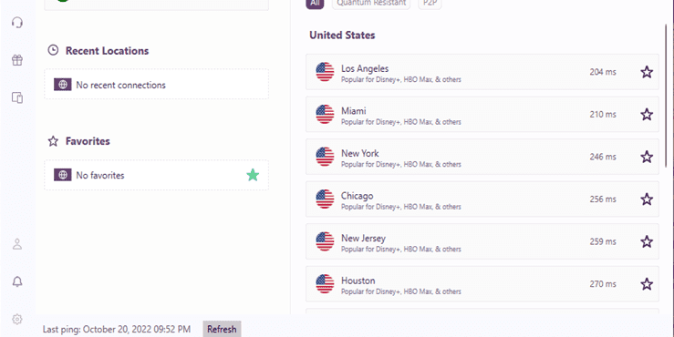- 打开 PureVPN 并选择其中一台服务器来更改您的真实 IP 地址。我建议选择距离您所在位置最近的服务器,以获得最快的连接速度。