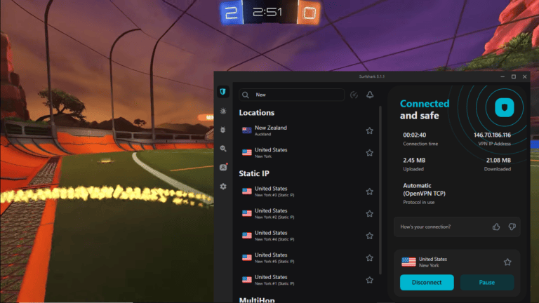 使用 Surfshark 在 PC 上玩《火箭联盟》需要几分钟。