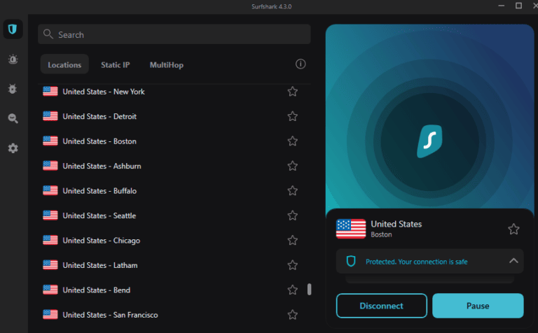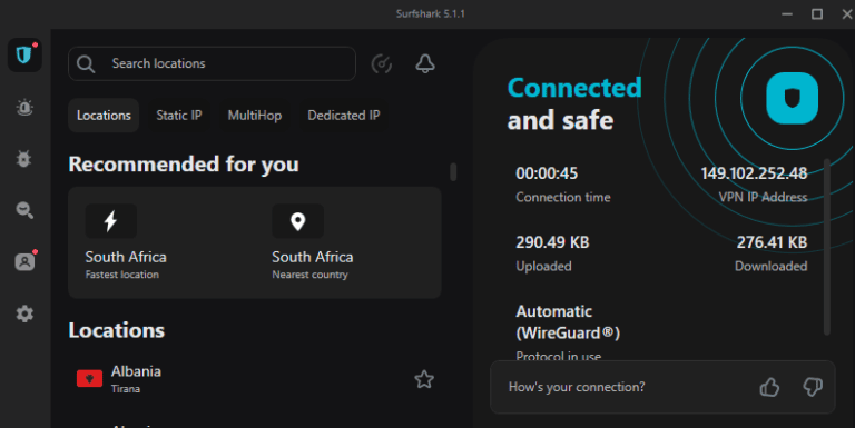 - 连接到 Surfshark 服务器以绕过 ISP 的限制。这消除了滞后,让您能够执行完美的演示并轻松创造得分机会。