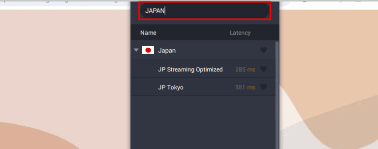 - 根据要在Xbox上访问的流服务或游戏标题,搜索您喜欢的VPN服务器。例如,我选择日本服务器连接到FFXIV的日本数据中心(DC)。