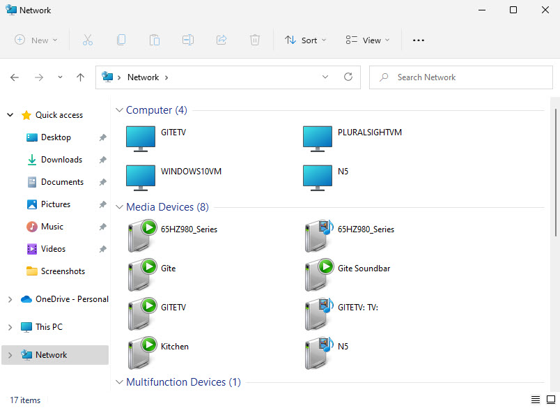 搜索完成后,您将看到存储设备出现在“计算机”部分中。在下图中,我的 NAS 驱动器(称为 N5)显示为可供访问。媒体设备还可以包括网络存储,该存储已设置为包含可以远程播放的音乐和视频文件。