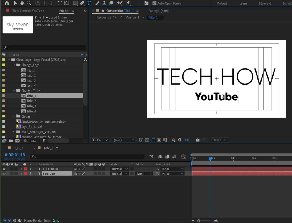 将徽标插入 After Effects 模板后,下一步是个性化标语并准备导出。操作方法如下: